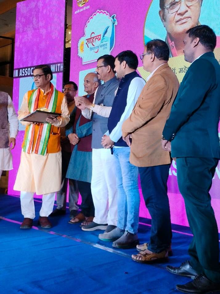 प्रबन्ध सम्पादक जय दुबे, प्रबन्ध निदेशक हर्षित सिंघानिया, साहित्य विद गिरीश पंकज एवं प्रो.सुधीर शर्मा आदि ने डॉ महेशचन्द्र को सम्मान पत्र एवं प्रतीक चिह्न प्रदान किया।