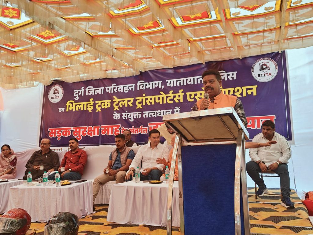 इसी तारतम्य में आज परिवहन विभाग दुर्ग द्वारा भिलाई ट्रक, ट्रेलर ट्रांसपोर्ट्स एसोसिएशन के संयुक्त तत्वधान में सड़क सुरक्षा माह के अंतर्गत खुर्सीपार गेट भिलाई में आयोजन किया गया।