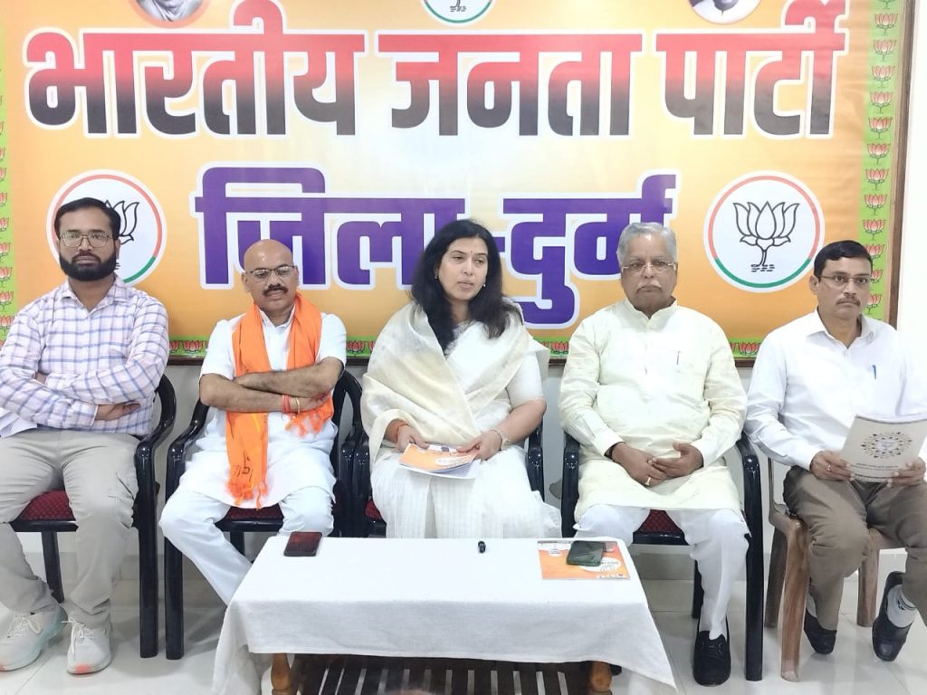 दुर्ग | आगामी दिनों होने वाले नगरी निकाय चुनाव को लेकर दुर्ग जिला भाजपा कार्यालय में* भारतीय जनता पार्टी का घोषणा पत्र “अटल विश्वास पत्र” भारतीय जनता पार्टी की राष्ट्रीय उपाध्यक्ष सरोज पांडेय, जिला संगठन प्रभारी राजीव अग्रवाल , जिला अध्यक्ष सुरेंद्र कौशिक उपाध्यक्ष राजेंद्र कुमार पाध्ये, मीडिया प्रभारी राजा महोबिया ने जारी करते हुए|