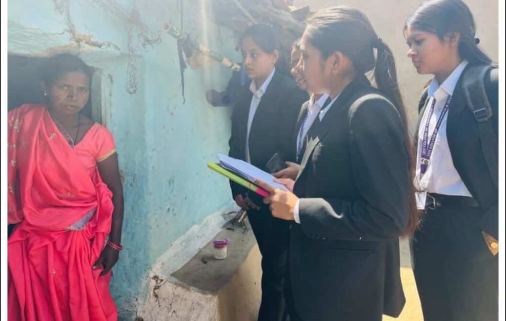 इस शिविर में लॉ के छात्रों ने घर–घर जाकर सर्वे किया और ग्रामीणों की समस्याएँ सुनीं।
