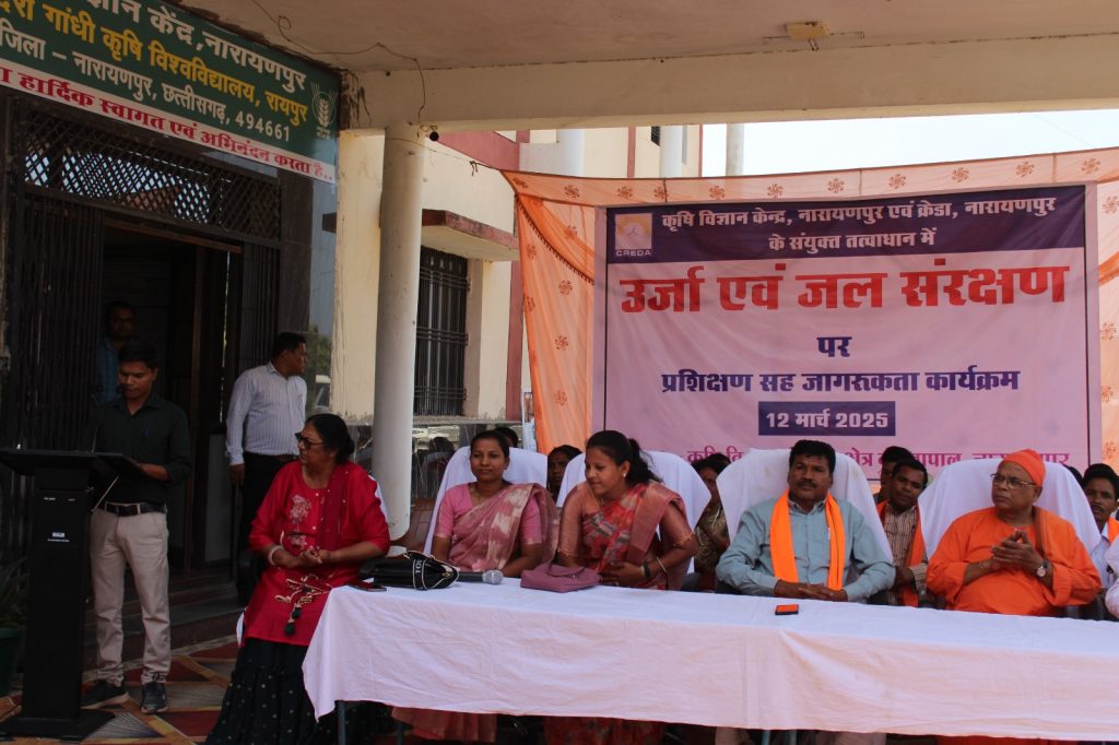 नारायणपुर | नारायणपुर कृषि विज्ञान केंद्र एवं क्रेडा के संयुक्त तत्वाधान में उर्जा एवं जल संरक्षण पर एक दिवसीय प्रशिक्षण सह जागरूकता कार्यक्रम का आयोजन कृषि विज्ञान केंद्र केरलापाल में हुआ। इस कार्यक्रम में मुख्य अतिथि जिला पंचायत अध्यक्ष नारायण मरकाम, विशिष्ट अतिथि उपाध्यक्ष प्रताप मंडावी,