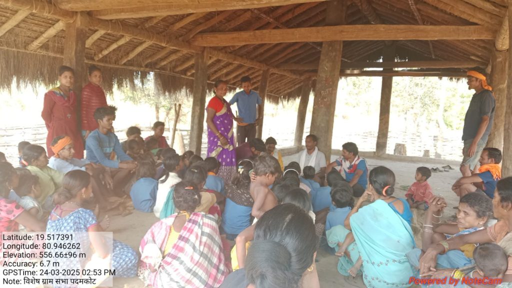नारायणपुर | आजादी के 78 वर्ष बाद जिले के जनपद पंचायत ओरछा अंतर्गत ग्राम पंचायत पदमकोट के घोटूल में पहली बार एक विशेष ग्रामसभा का आयोजन किया गया। इस ग्रामसभा में ग्रामीणों ने विभिन्न आवश्यकताओं के लिए प्रस्ताव पेश किए, जिनमें स्कूल, आंगनबाड़ी केंद्र, सौर ऊर्जा संचालित पंप, बोर खनन, शासकीय आवास, पंचायत भवन, उचित मूल्य की दुकान, उप स्वास्थ्य केंद्र, विद्युत व्यवस्था, और मनरेगा से भूमि मरम्मत कार्य शामिल हैं। 18 हितग्राहियों ने इन प्रस्तावों के लिए स्वेच्छा से आवेदन किया।