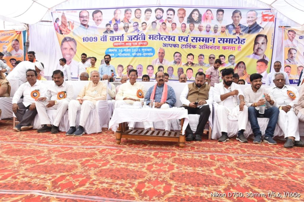 दुर्ग जिले के धमधा तहसील के अंतर्गत ग्राम धौराभाठा में आज 1009वीं कर्मा जयंती महोत्सव एवं सम्मान समारोह का आयोजन किया गया। तहसील साहू संघ धमधा द्वारा आयोजित इस कार्यक्रम में उप मुख्यमंत्री श्री अरुण साव बतौर मुख्य अतिथि शामिल हुए। समारोह को सम्बोधित करते हुए मुख्य अतिथि उप मुख्यमंत्री साव ने सभी को भक्त माता कर्मा जयंती की शुभकामनाएं दी।