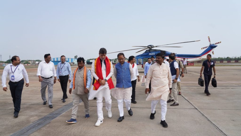 जगदलपुर | 15 अप्रैल स्थानीय मां दंतेश्वरी एयरपोर्ट में मुख्यमंत्री विष्णुदेव साय और उप मुख्यमंत्री विजय शर्मा के दो दिवसीय बस्तर प्रवास में जगदलपुर आगमन पर जनप्रतिनिधियों और वरिष्ठ अधिकारियों ने आत्मीय स्वागत किया।