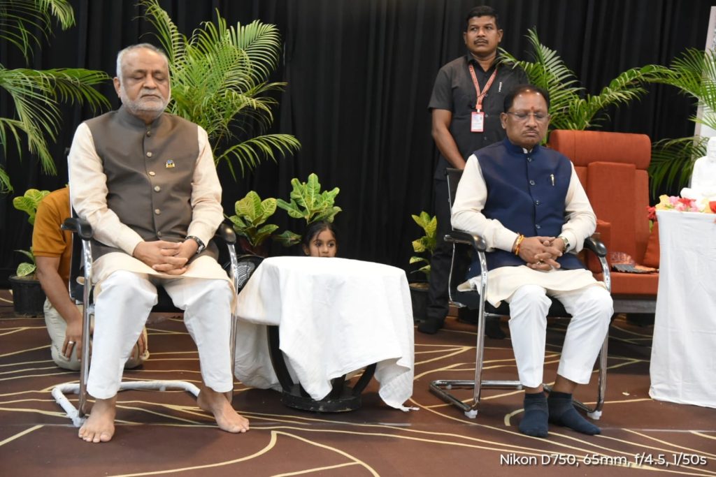 मुख्यमंत्री साय यहां पर आयोजित मनोयोग कार्यक्रम में भी शामिल हुए और आधा घंटे तक आम नागरिकों के साथ मौन धारण किया।