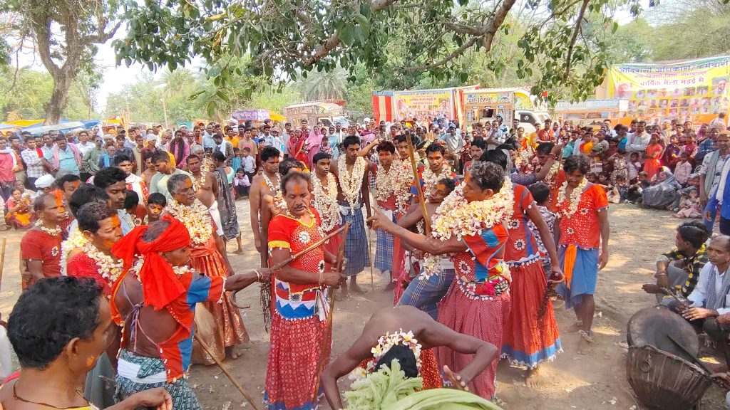 यहां आस पास के ग्रामों के स्थानीय देवी देवताओं के समागम के साथ मेला स्थल मे तीन परिक्रमा की रस्म पूरी की गई। इस रस्म के दौरान जगह जगह ग्रामीणों द्वारा सभी देवी देवताओं का विग्रहों के प्रतीक स्वरूप डंगई, लाठ, डोली, छत्र की पारंपरिक पूजा अर्चना किया गया।