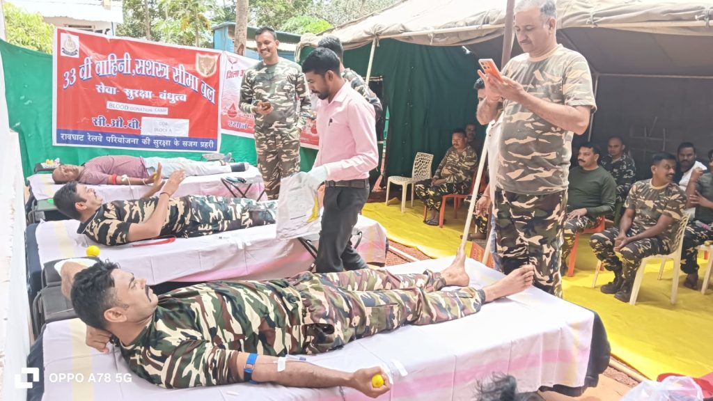 नारायणपुर|विश्व रक्तदान दिवस (14 जून 2025) के अवसर पर 33वीं बटालियन के COB ब्लॉक ए में एक रक्तदान शिविर का आयोजन किया गया। यह शिविर कमांडेंट श्री प्रियवत शर्मा के मार्गदर्शन में संपन्न हुआ। शिविर की जिम्मेदारी COB ब्लॉक ए के इंचार्ज निरीक्षक संजय कुमार एवं CSO सहायक उप निरीक्षक सुरेंद्र पाल सिंह द्वारा निभाई गई।