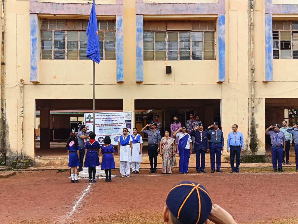 जगदलपुर। केन्द्रीय विद्यालय जगदलपुर परिसर में आज संकुल स्तरीय तीन दिवसीय चतुर्थ चरण/हीरक पंख शिविर-2025 का भव्य शुभारंभ ध्वजारोहण समारोह के साथ हुआ। प्रातः सभी विद्यार्थियों ने एकत्र होकर झंडा गीत का सामूहिक गायन किया और ध्वज को सलामी दी।