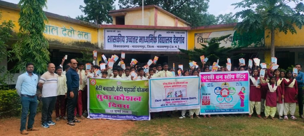 नारायणपुर | कलेक्टर प्रतिष्ठा ममगाईं के निर्देशानुसार एवं जिला कार्यक्रम अधिकारी, श्री लुपेंद्र महिनाग के मार्गदर्शन पर महिला एवं बाल विकास विभाग के अधिकारियों एवं कर्मचारियों द्वारा मिशन शक्ति अंतर्गत 15 जुलाई को जिले के हायर सेकण्डरी स्कूल देवगांव में शाला के प्राचार्य कमलेश सिंह की उपस्थिति में विधिक जागरूकता शिविर आयोजित किया गया।