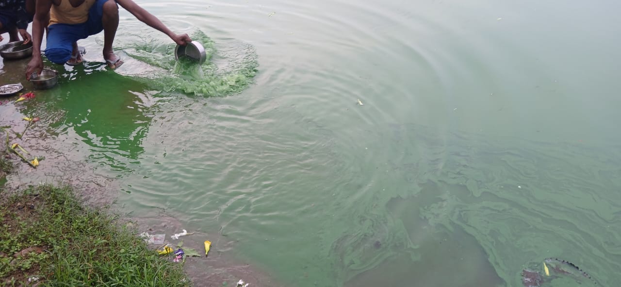 तालाब पर निर्भर सैकड़ों परिवारों के लिए यह संकट और भी गहरा है, क्योंकि वे रोजाना इसी पानी का इस्तेमाल स्नान, कपड़े धोने, बर्तन साफ करने और कभी-कभी पीने तक के लिए करते हैं।