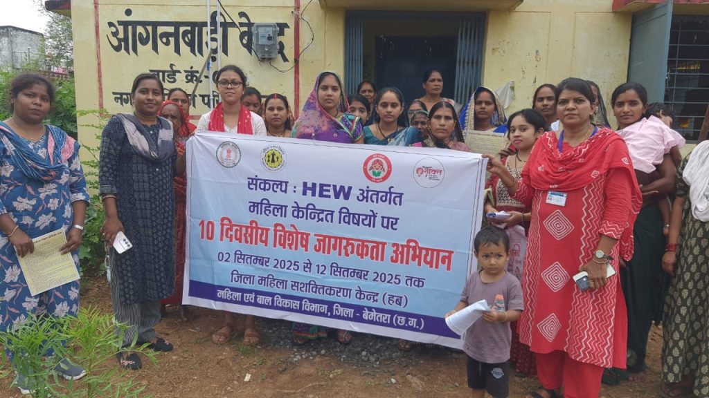 बेमेतरा | जिला महिला सशक्तिकरण केन्द्र (हब) महिला एवं बाल विकास विभाग द्वारा भारत सरकार की संकल्प एचईडब्लू योजना अंतर्गत महिलाओं के लिए 10 दिवसीय (02 से 12 सितम्बर 2025) विशेष जागरूकता अभियान चलाया जा रहा है।
