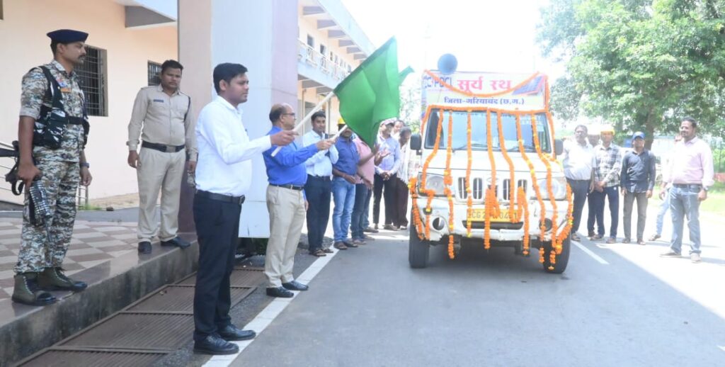 गरियाबंद | केन्द्र सरकार द्वारा लोगों के घर में ही बिजली उत्पादन कर उन्हें मुफ्त बिजली का लाभ देने प्रधानमंत्री सूर्यघर बिजली योजना का संचालन किया जा रहा है। इस योजना के तहत लोगों को अपने घरों में रूफटॉप सोलर प्लांट लगाने के लिए प्रोत्साहित किया जा रहा है। इसी तारतम्य में आज कलेक्टर बीएस उइके ने लोगों को पीएम सूर्य घर योजना के संबंध में जागरूक करने सूर्य रथ जागरूकता वाहन को कलेक्टर परिसर से हरी झंडी दिखाकर रवाना किया।