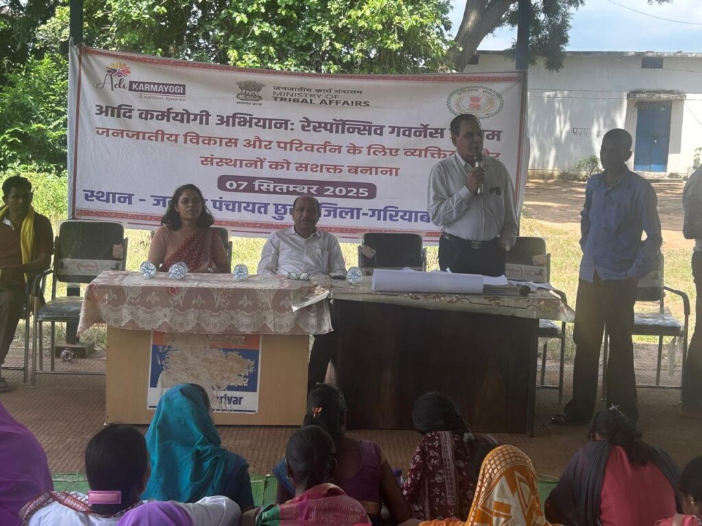 गरियाबंद | जनजातीय कार्य मंत्रालय, भारत सरकार द्वारा जनजातीय समुदायों की भागीदारी सुनिश्चित करते हुए जमीनी स्तर पर नेतृत्व तैयार करने के उद्देश्य संचालित आदि कर्मयोगी अभियान के सुचारू क्रियान्वयन हेतु जिला एवं ब्लॉक स्तर पर प्रशिक्षण उपरांत 15 से 18 सितम्बर 2025 तक प्रत्येक क्लस्टर में एकदिवसीय प्रशिक्षण आयोजित किया गया।