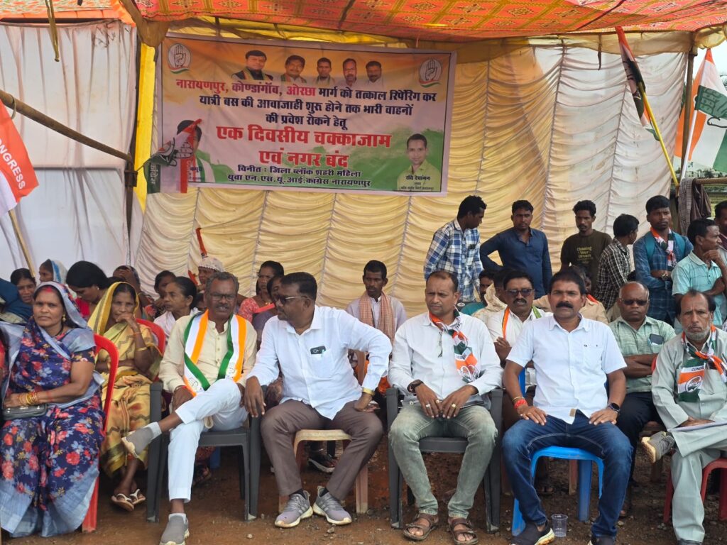 लगभग 15 दिनों से इस मार्ग पर यात्री बसों का संचालन पूर्ण रूप से बंद है, जिससे जिले के ग्रामीण इलाकों के लोग यातायात के अभाव में फंसे हुए हैं। मरीजों, छात्रों, कर्मचारियों व्यापारी बाजार हाट व्यापारी और आम नागरिकों की आवाजाही बाधित हो गई है। नारायणपुर कोंडागांव के बीच बंद बस को चालू करवाने और बस का संचालन सुचारु रूप से हो सके तब तक भारी वाहन को रोकने के लिए गढ़बेंगाल चौक मे जिला कांग्रेस कमेटी ब्लॉक शहर कांग्रेस कमेटी शहर कांग्रेस कमेटी के सयुक्त तत्वाधान मे चक्काजाम आंदोलन किया गया|