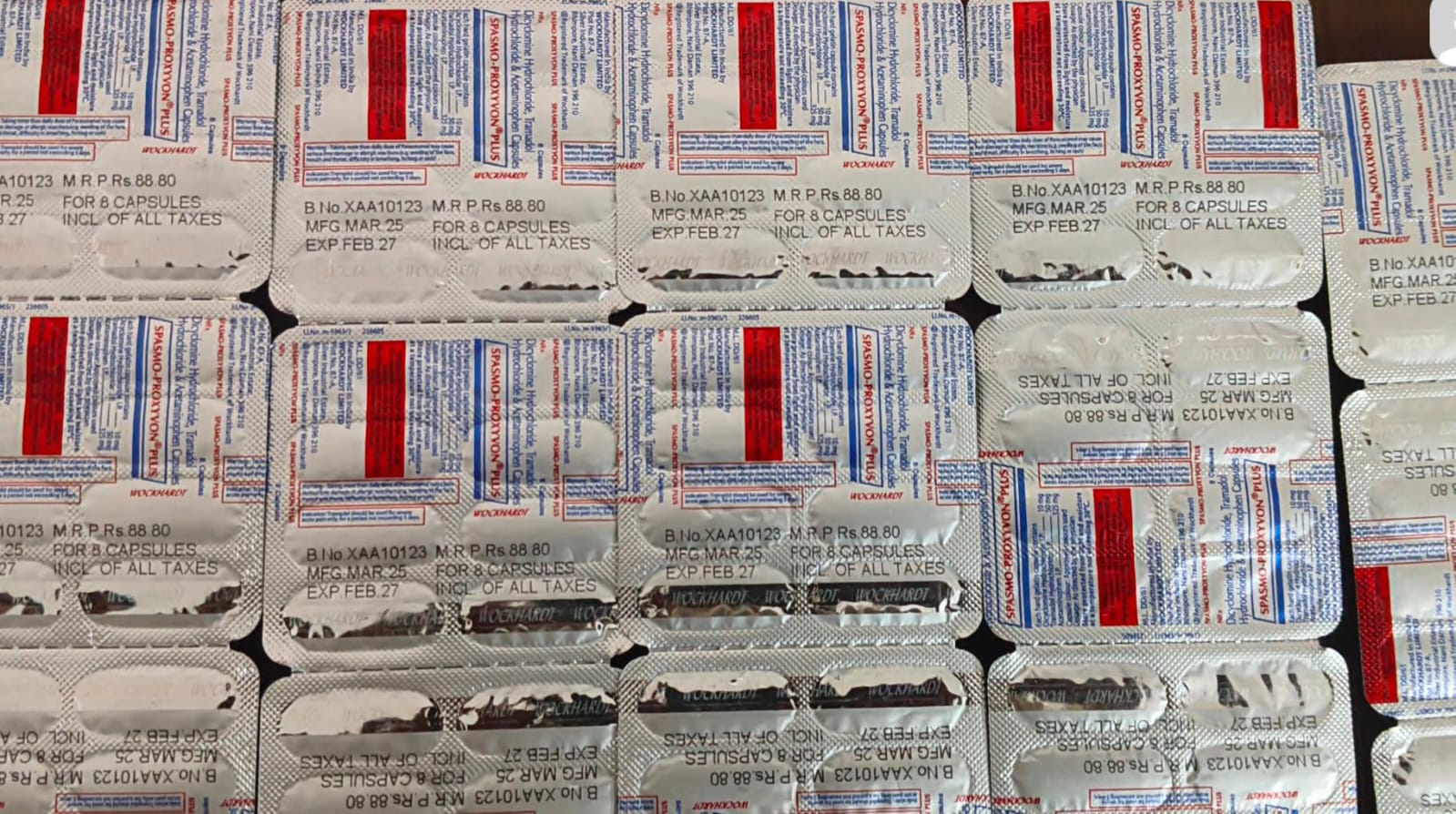 जिस पर पुलिस ने दोनों को हिरासत में ले लिया गया व SPASMO PROXYVON PIUS कैप्सूल का औषधि निरीक्षक से परीक्षण कराया गया, जिनके द्वारा परीक्षण रिपोर्ट में उक्त कैप्सूल को प्रतिबंधित व नशीली बताने पर , पुलिस के द्वारा सभी 30 पत्ता में 720 नग SPASMO PROXYVON PIUS कैप्सूल को जप्त कर लिया गया व साथ ही आरोपियों के द्वारा घटना में प्रयुक्त सफेद रंग की एक्टिवा स्कूटी क्रमांक CG 13- AS -4048 को भी पुलिस ने जप्त कर लिया गया है। जप्त प्रतिबंधित नशीली SPASMO PROXYVON PIUS कैप्सूल की बाजार में अनुमानित कीमत लगभग 10 हजार रुपए है।
