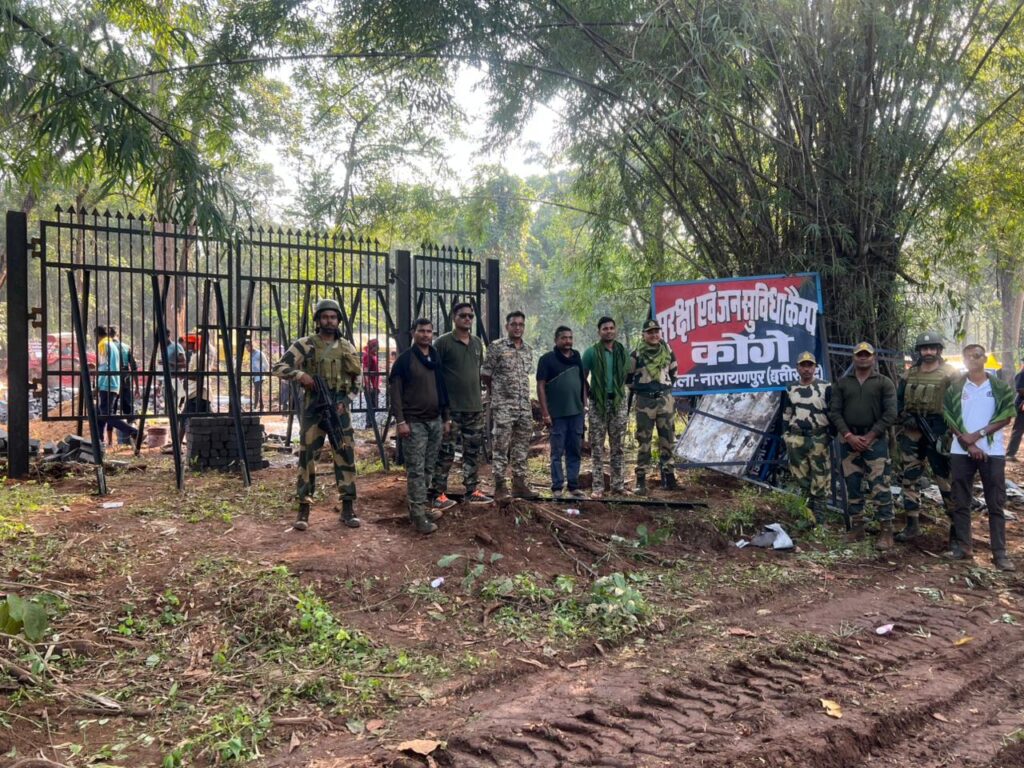 इसी कड़ी में थाना ओरछा के ग्राम कोंगे क्षेत्र में नक्सल विरोधी अभियानों एवं सोनपुर – कांदुलपार – सितरम एक्सिस तक सड़क निर्माण कार्य में सुरक्षा प्रदान करने एवं विकास कार्यो में सहयोग पहुंचाने के उद्देश्य से आज दिनांक 104-11-2025 को नारायणपुर पुलिस डीआरजी, बस्तर फॉईटर एवं बीएसएफ 129वीं वाहिनी के द्वारा घोर नक्सल प्रभावित माड़ क्षेत्र माओवादियों के आश्रय स्थल ग्राम कोंगे में नवीन कैम्प स्थापित किया गया है।