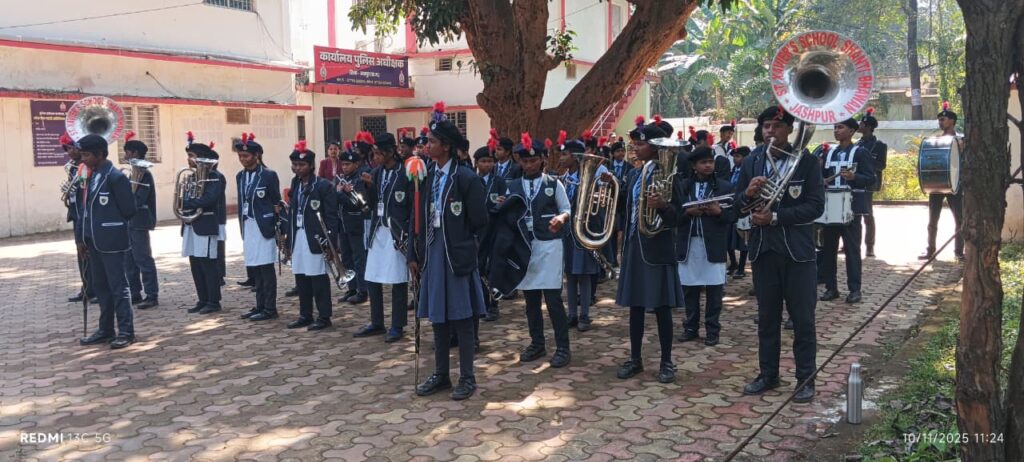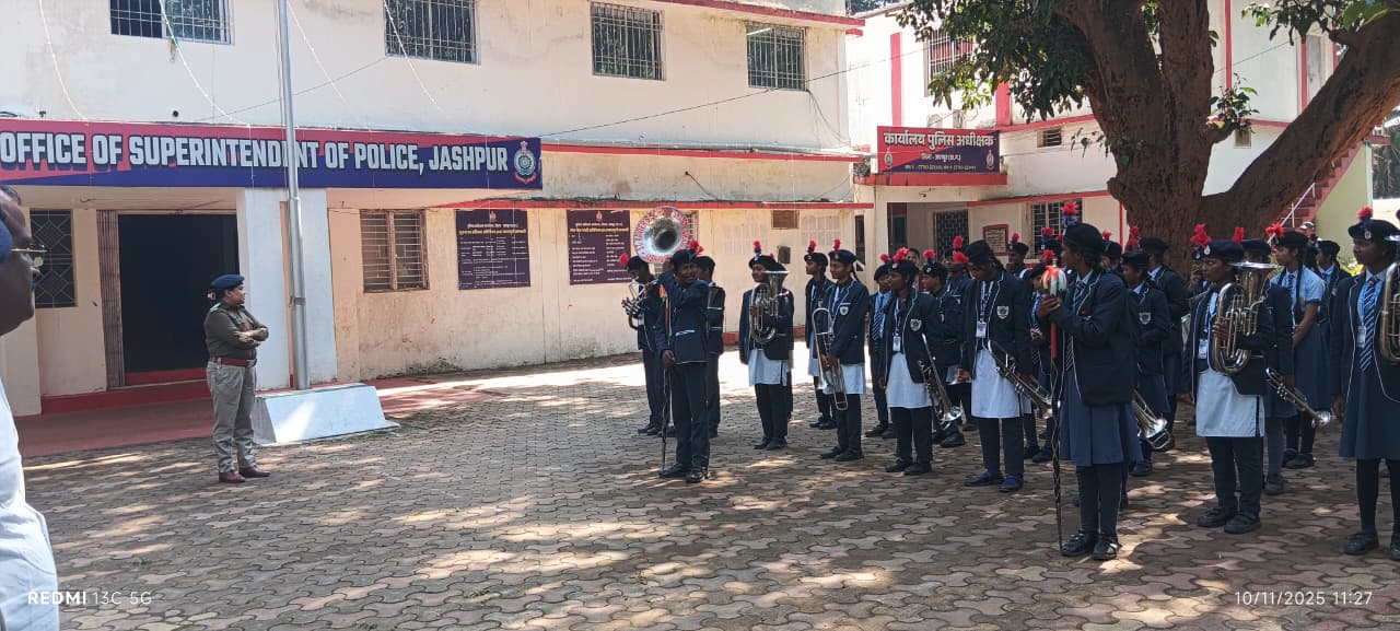 कार्यक्रम की शुरुआत राष्ट्रगीत “वंदे मातरम” के बैंड धुन से हुई, जिसमें शांति भवन, जशपुर से आए विद्यार्थियों की बैंड पार्टी ने मनमोहक प्रस्तुति दी। बैंड की स्वर लहरियों ने पूरा वातावरण देशभक्ति की भावना से ओतप्रोत कर दिया। पुलिस कार्यालय प्रांगण में मौजूद अधिकारी, कर्मचारी और छात्र-छात्राएँ राष्ट्रगीत की धुन पर गर्व महसुस किया गया।