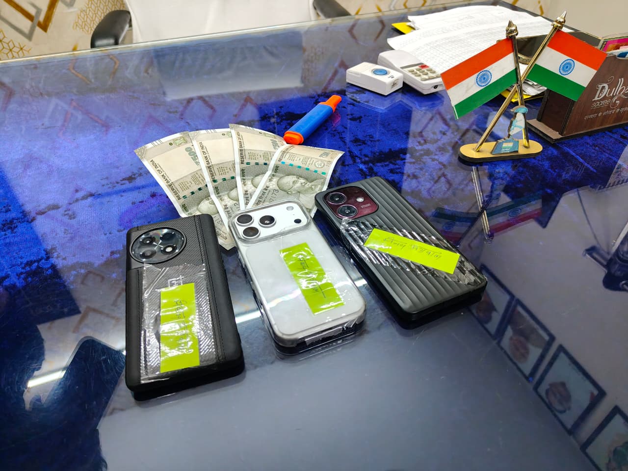 नकदी रकम ₹2000 तथा 3 मोबाइल फोन (आईफोन, वन प्लस, ओप्पो), कुल अनुमानित मूल्य ₹82,000।