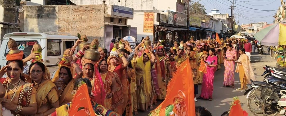 कलश यात्रा में नगर की माताओं-बहनों ने बढ़-चढ़कर हिस्सा लिया। पारंपरिक वेशभूषा में सजी महिलाओं ने सिर पर कलश धारण कर पूरे क्षेत्र का भ्रमण किया। यात्रा के दौरान भजन-कीर्तन और जयघोष से वातावरण भक्तिमय हो उठा।