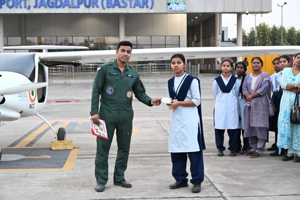 नारायणपुर 22 फरवरी 2026/ नारायणपुर जिले के सुदूर अंचलों के विद्यार्थियों के लिए शनिवार का दिन एक ऐतिहासिक उपलब्धि के रूप में दर्ज हुआ, जब जिला प्रशासन की विशेष पहल से माँ दन्तेश्वरी हवाई अड्डा, जगदलपुर में एक उच्च-स्तरीय शैक्षणिक भ्रमण का आयोजन किया गया। बस्तर के इतिहास में यह संभवतः पहला अवसर था, जब सामान्य स्कूली विद्यार्थियों को NCC एयर कैडेट्स की तर्ज पर व्यावहारिक ‘फ्लाइंग एक्सपोजर’ प्रदान किया गया ताकि वे विमानन की अत्याधुनिक तकनीक और रक्षा सेवाओं में करियर की संभावनाओं को प्रत्यक्ष रूप से समझ सकें।