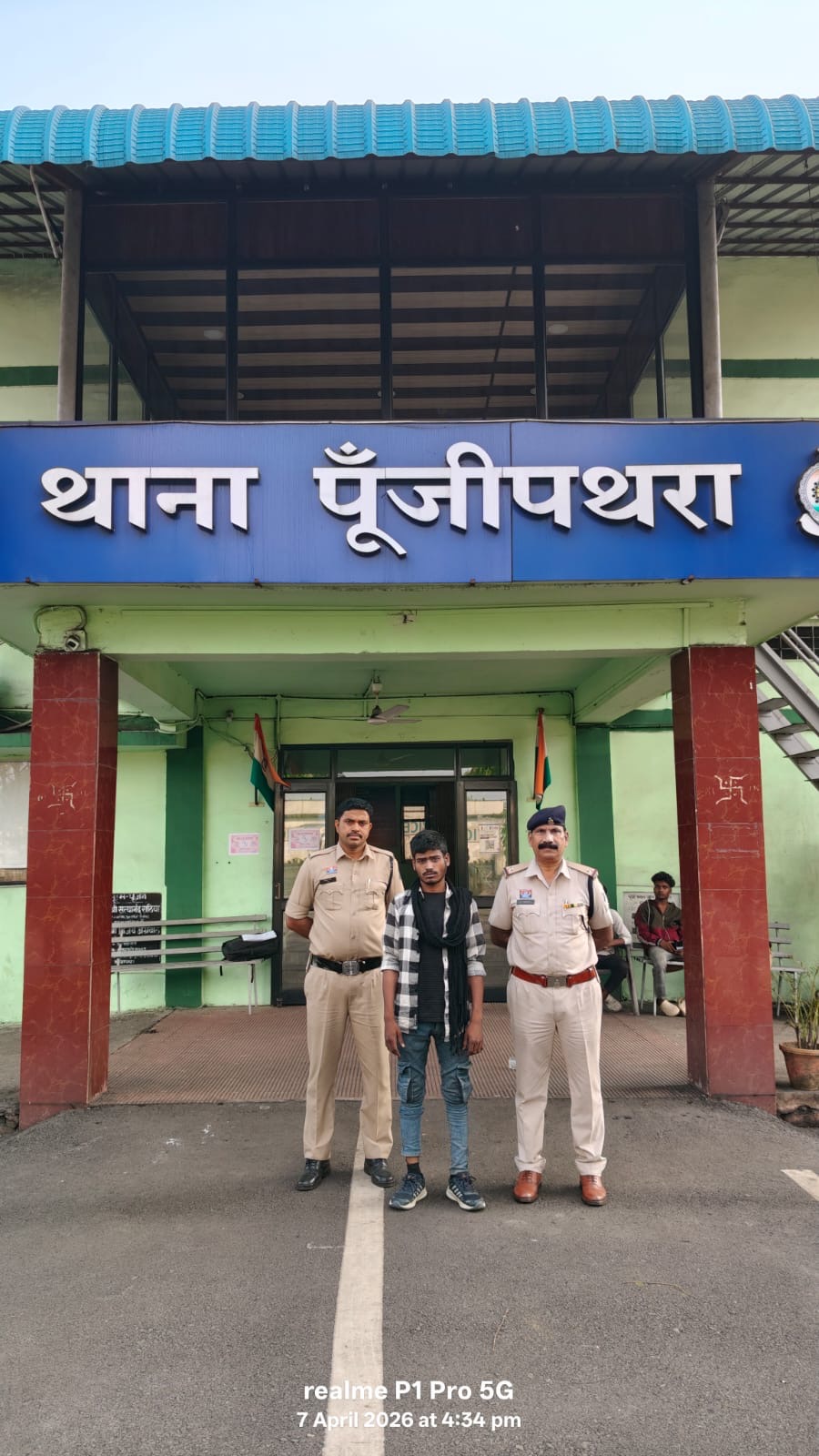 दूसरे मामले में थाना पूंजीपथरा में दिनांक 25.03.2026 को एक प्रार्थी ने अपनी 15 वर्षीय पुत्री के 17 मार्च की रात घर से बिना बताए लापता होने की रिपोर्ट दर्ज कराई थी। पुलिस ने अज्ञात आरोपी के विरुद्ध अपराध कमांक 49/25 धारा 137(2) बीएनएस के तहत दर्ज कर पतासाजी शुरू की। जांच के दौरान दिनांक 06.04.2026 को अंबिकापुर के खरसिंया नाका चौक के पास एक युवक के साथ नाबालिग बालिका को बरामद किया गया। पीड़िता का महिला पुलिस अधिकारी द्वारा कथन कराया गया, जिसमें बालिका द्वारा बस से जामगांव फिर अम्बिकापुर ले जाना और शारीरिक संबंध बनाना बताई है । बालिका के कथन, मेडिकल पर आरोपी के विरुद्ध *धारा 87, 65 (1) बी.एन.एस. 4. 6 पॉक्सो एक्ट* विस्तारित कर वैधानिक कार्रवाई की गई। इस कार्रवाई में थाना प्रभारी रामकिंकर यादव के नेतृत्व में पुलिस टीम में शामिल एएसआई उमाशंकर विश्वाल और हमराह स्टाफ की सक्रिय भूमिका रही।