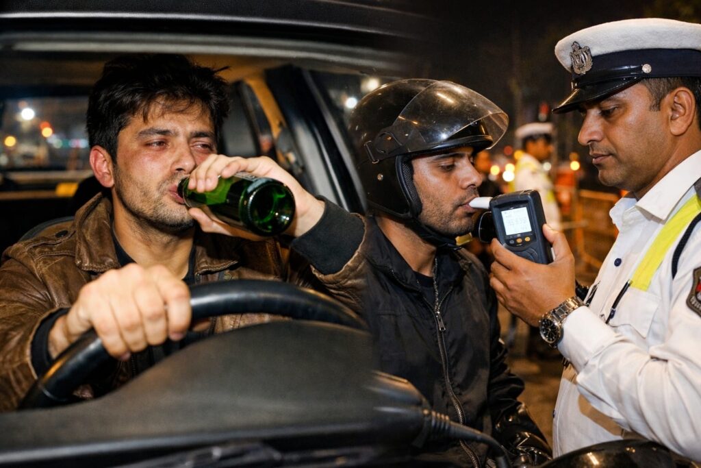 शहर में लगातार बढ़ रहे नशे में ड्राइविंग के मामलों को देखते हुए पुलिस द्वारा विशेष अभियान चलाया जा रहा है। चेकिंग के दौरान बड़ी संख्या में ऐसे चालक पकड़े गए जो शराब के नशे में वाहन चला रहे थे, जिससे सड़क सुरक्षा पर गंभीर खतरा उत्पन्न हो रहा था।