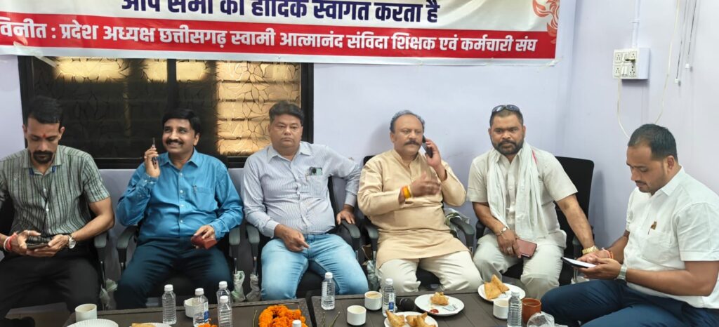 छत्तीसगढ़ में स्वामी आत्मानंद विद्यालयों में कार्यरत संविदा शिक्षक एवं कर्मचारी एक बार फिर अपने स्थायीकरण की मांग को लेकर आंदोलन की राह पर बढ़ते नजर आ रहे हैं। राजधानी रायपुर के कर्मचारी भवन, शहीद भगत सिंह चौक, तेलीबांधा में आयोजित प्रदेश स्तरीय बैठक में इस मुद्दे पर अहम रणनीति तैयार की गई।