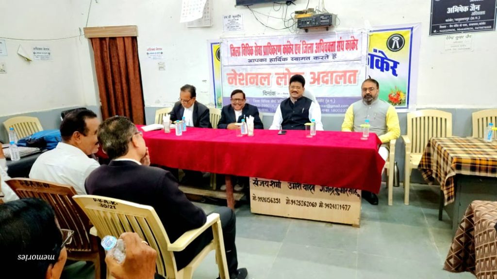 बैठक में न्यायालय में लंबित प्रकरणों को अधिक से अधिक संख्या में राजीनामा के माध्यम से लोक अदालत में निराकृत किए जाने पर विशेष चर्चा की गई। अधिवक्ताओं को सुझाव दिया गया कि वे अपने पक्षकारों को प्रकरणों को राजीनामा के आधार पर निराकृत कराएं और उसे राजीनामा हेतु चर्चा करने के लिए न्यायालय समक्ष लेकर आए। बैठक में जिला विधिक सेवा प्राधिकरण कांकेर के सचिव भास्कर मिश्र, अध्यक्ष नरेंद्र दवे, अधिवक्ता संघ कांकेर व समस्त अधिवक्तागण उपस्थित रहे।