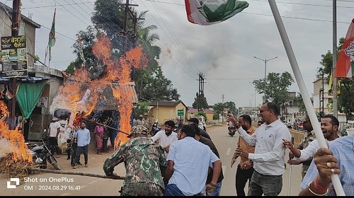 नारायणपुर |यूथ कांग्रेस के कार्यकर्त्ताओ पर लाठी चार्ज कर 150 से अधिक कांग्रेस कार्यकर्त्ता और जनप्रतिनिधि सभापति पर एफआईआर करने के विरोध मे आज नारायणपुर ब्लॉक शहर कांग्रेस कमेटी ने तहसील ऑफिस के सामने प्रदेश के मुख्यमंत्री विष्णुदेव साय, और गृहमंत्री विजय शर्मा का पुतला दहन किया, ज्ञात हो की पूर्व मुख्यमंत्री भूपेश बघेल के काफिले को भिलाई सिरसा गेट के पास बजरंगदल के कार्यकर्त्ताओ के द्वारा रोक कर सुरक्षा कर्मियों के साथ अभद्रता किया गया था|