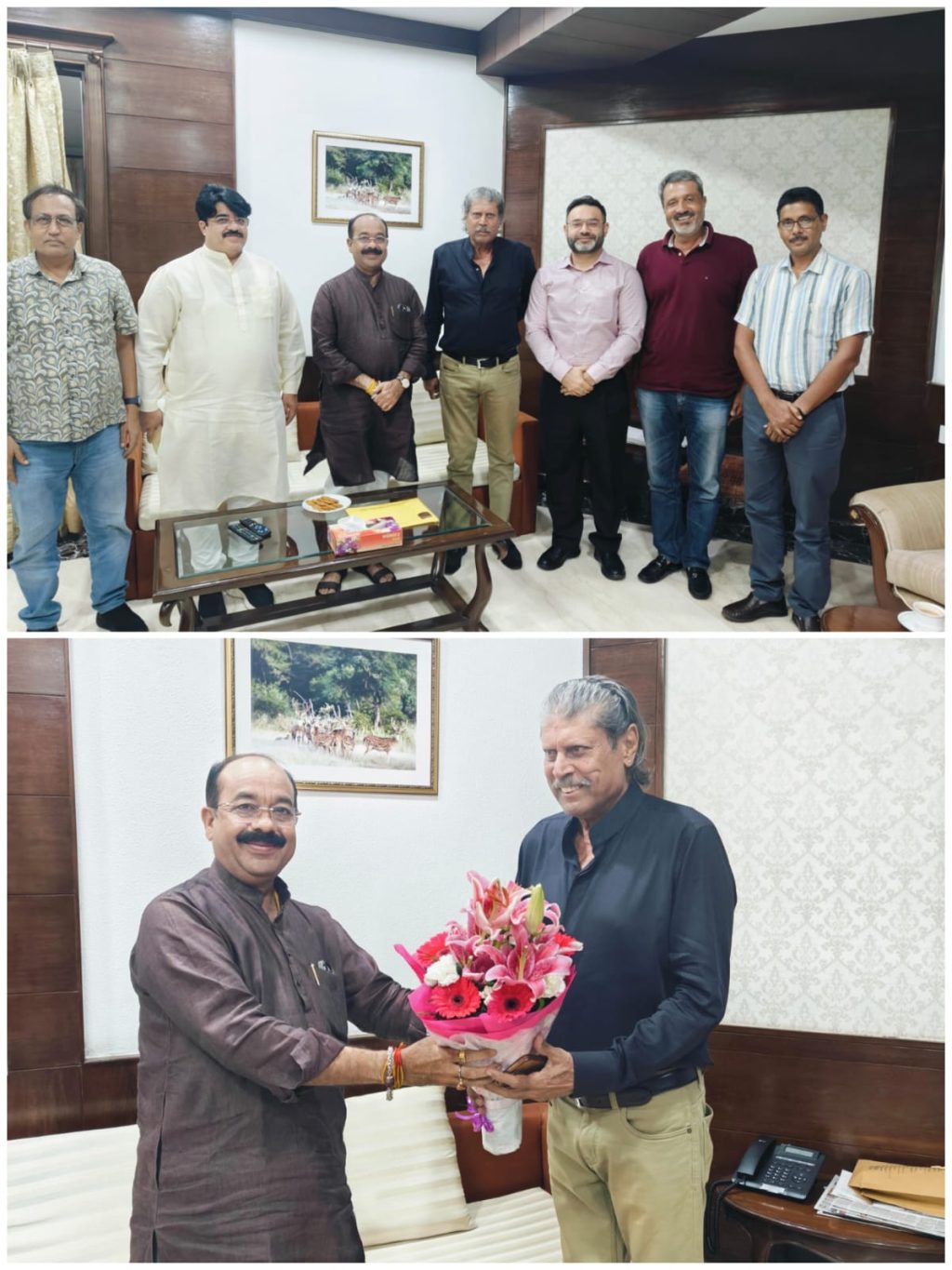 रायपुर। उपमुख्यमंत्री अरुण साव ने आज ‘राष्ट्रीय खेल दिवस’ के अवसर पर भारत को पहले वनडे क्रिकेट वर्ल्ड कप दिलाने वाले पूर्व क्रिकेट कप्तान एवं प्रोफेशनल गोल्फ टूर ऑफ इंडिया के अध्यक्ष कपिल देव जी से नई दिल्ली में सौजन्य मुलाकात की। दोनों की यह मुलाकात छत्तीसगढ़ सदन में हुई। इस दौरान साव और कपिल देव के बीच प्रदेश में खेल गतिविधियों को बढ़ावा देने पर सार्थक चर्चा हुई।