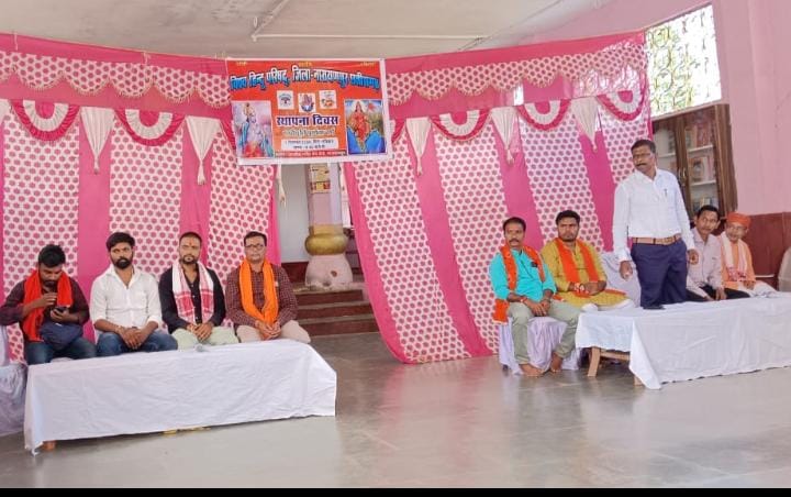 नारायणपुर | नारायणपुर के जगदीश मंदिर प्रांगण में विश्व हिंदू परिषद स्थापना दिवस का कार्यक्रम हर्षोल्लास से रविवार को संपन्न हुआ, विहिप के 60 वर्ष हुए इस उपलक्ष्य में पुरे भारत वर्ष में मनाया जा रहा है, विहिप का मुख्य उद्देश्य हिंदू जीवन मूल्यों की रक्षा और पुनः स्थापना के लिए प्रतिबद्ध है, विश्व हिंदू परिषद का राममंदिर का संकल्प पुरा हुआ, धर्मांतरित हिंदुओं की घर वापसी का अभियान चलाया|