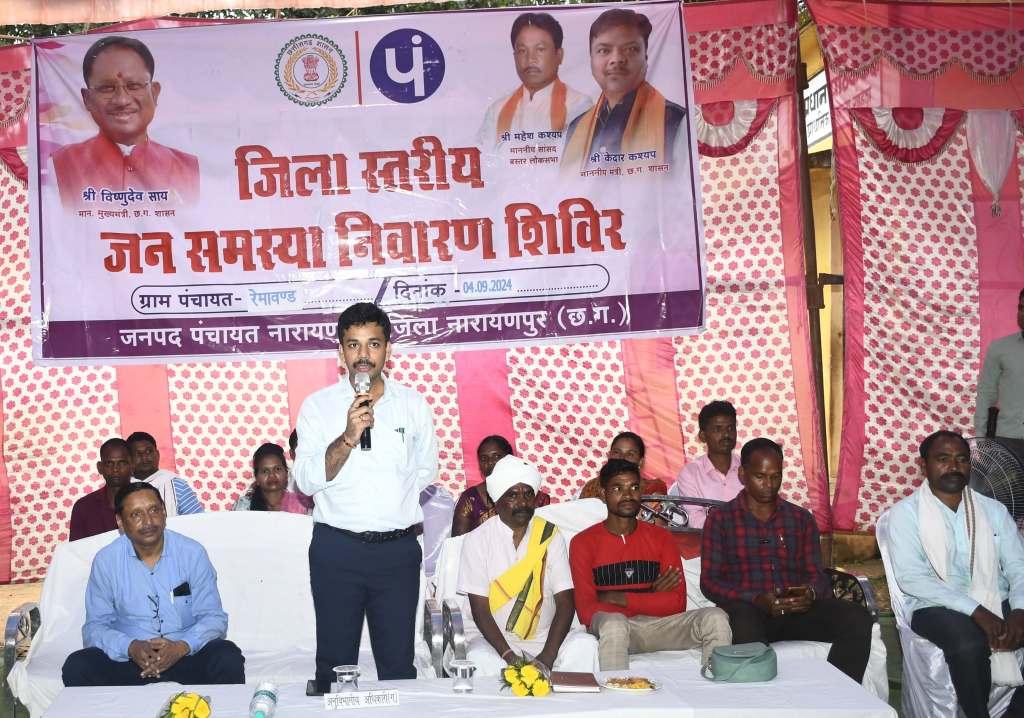 नारायणपुर | जिले के सम्माननीय नागरिकों के शिक्षा, स्वास्थ्य, कल्याण एवं चहुमुंखी कल्याण एवं विकास के लिए कार्य करना प्रशासन का ध्येय है। राज्य शासन द्वारा जारी निर्देशों के अनुक्रम में लोक शिकायतों के त्वरित निराकरण, विकास कार्यों के आवश्यकतानुसार स्वीकृत करने एवं जनकल्याणकारी योजनाओं का लाभ जन साधारण को पहुंचाने के उद्देश्य से जिले के ग्राम पंचायत एवं हाट बाजारों के दिनों में शिविर लगाकर प्राप्त आवेदनों को निराकरण किया जा रहा है। जिला स्तरीय शिविरों में जिला स्तर के अधिकारियों को शिविर में उपस्थित रहने निर्देशित किया गया है। जिला स्तरीय जनसमस्या शिविर का आयोजन 04 सितम्बर को बेनूर में किया गया।