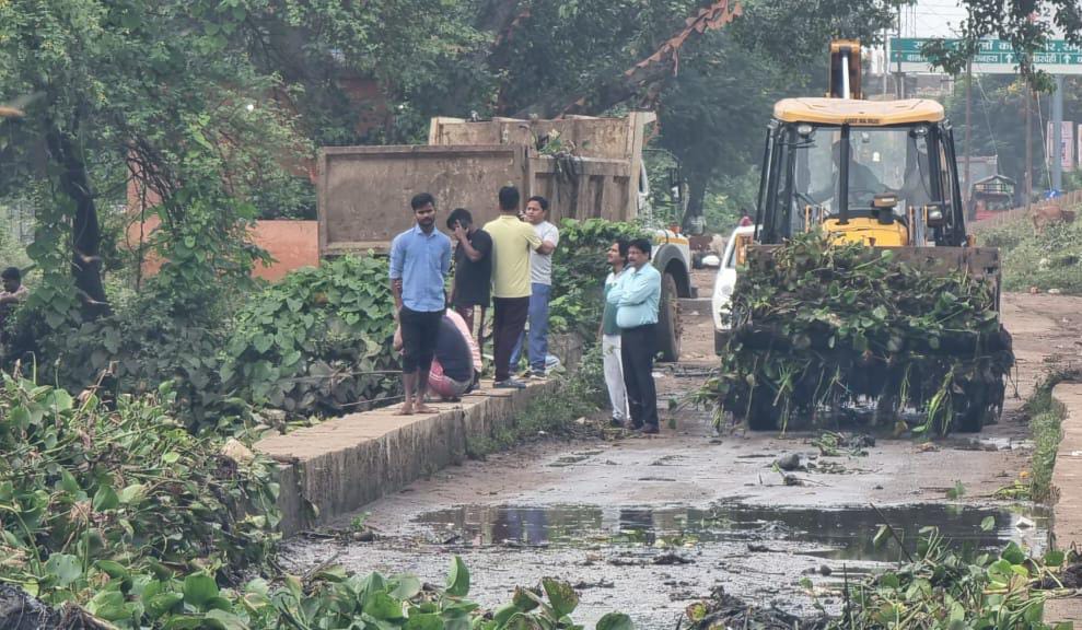 आज सुबह जेसीबी और डंपर के साथ नगर निगम की टीम पुलगांव पुल पर पहुंची। जहां उन्होंने कर्मशाला अधीक्षक के नेतृत्व में जेसीबी के माध्यम से बारिश के कारण ऊपर की ओर आ गई जलकुंभी को नदी से निकालने का प्रयास शुरू किया गया और कई डंपर जलकुंभी भी निकाली गई । नगर निगम ने जलकुंभी हटाकर नदी को स्वच्छ करने का कार्य तो किया है। नगर निगम के स्वास्थ्य विभाग अमला द्वारा जलकुंभी हटाने का काम शुरू हो गया हैं।