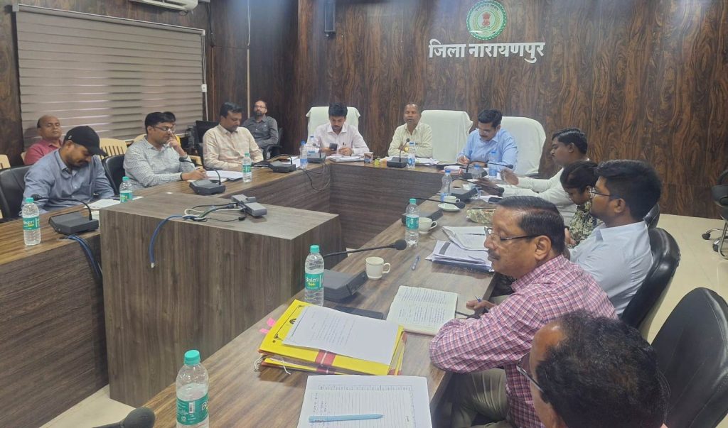 नारायणपुर // साप्ताहिक समय सीमा की बैठक कलेक्टर बिपिन मांझी द्वारा जिला कार्यालय के सभाकक्ष में लिया गया। उन्होंने कलेक्टर एसपी कॉन्फ्रेस में मुख्यमंत्री के द्वारा दिये गये निर्देशों का परिपालन करने के लिए जिला स्तरीय अधिकारियों को निर्देशित किये। समय सीमा की बैठक में समीक्षा करते हुए कलेक्टर मांझी ने जिला स्तरीय अधिकारियों को निर्देशित करते हुए कहा कि जिला प्रशासन द्वारा जिले के मरीजों का निःशुल्क इलाज कराने के लिए जिले के सभी ग्राम पंचायतों में मुनादी के माध्यम से प्रचार प्रसार कराना सुनिश्चित करें। कलेक्टर ने जिले के पहुंचविहीन क्षेत्रों के ग्रामों के मरीज जो इलाज नहीं करा पा रहे हैं ऐसे मरीजों के लिए जिला स्तर पर मेगा निःशुल्क स्वास्थ्य शिविर आयोजित कर लोंगो की मदद करने का कार्य किया जा रहा है, जिसका लाभ उठाने के लिए शिविर में आकर स्वास्थ्य जांच करवाकर इलाज कराने की अपील किया है। कलेक्टर ने बैठक में मतदान करने हेतु प्रेरित करने की शपथ दिलाई।