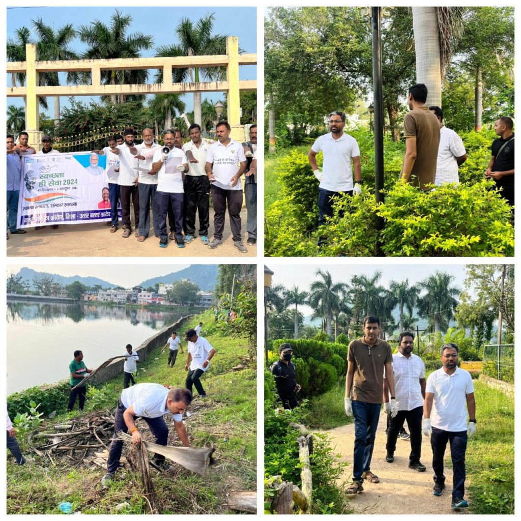उत्तर बस्तर कांकेर| प्रधानमंत्री नरेंद्र मोदी के आव्हान पर देश भर में स्वच्छता अभियान चलाया जा रहा है। इसी क्रम में नगर के जवाहर वार्ड स्थित ठाकुर विश्राम सिंह गार्डन के सामने तालाब किनारे विशेष स्वच्छता कार्यक्रम का आयोजन किया गया, जिसमें कलेक्टर नीलेश महादेव क्षीरसागर, जिला पंचायत के सीईओ सुमित अग्रवाल, नगरपालिका के सीएमओ सहित समाजसेवी अजय पप्पू मोटवानी, पूर्व सैनिक एवं अन्य अधिकारी और कर्मचारियों ने श्रमदान कर परिसर की साफ सफाई की।