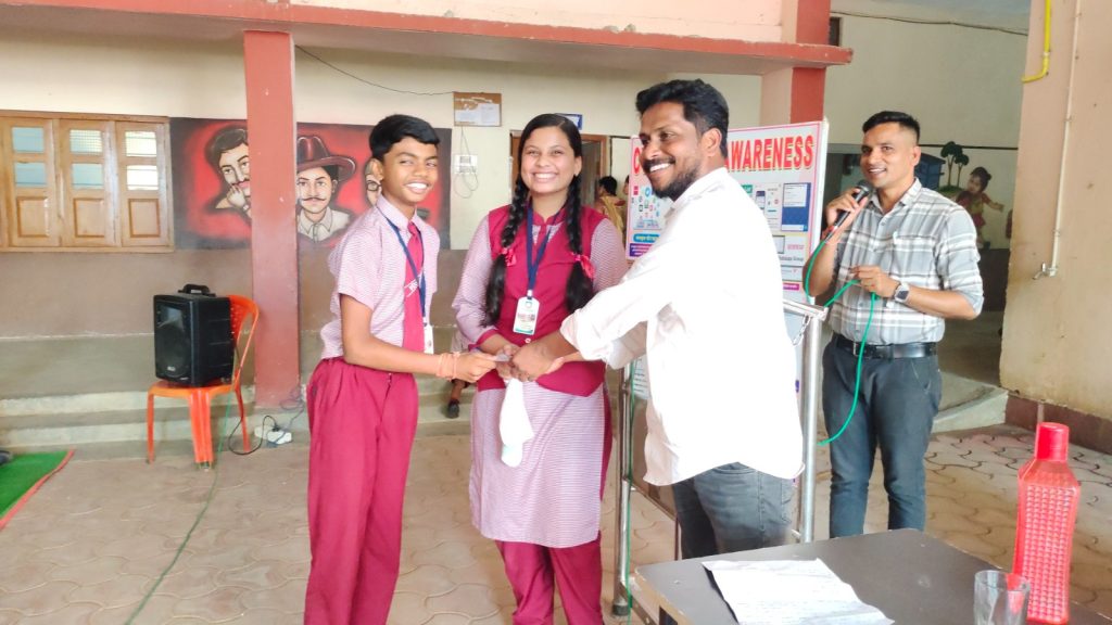 साइबर टीम द्वारा स्कूली छात्र/छात्राओं से साइबर ठगी से बचने के संबंध में मूलभूत प्रश्न किया गया जिसका छात्र/छात्राओं द्वारा सही जवाब दिये जाने के फलस्वरूप उन्हें नगद राशि से सम्मानित कर उनका उत्साहवर्धन किया गया।