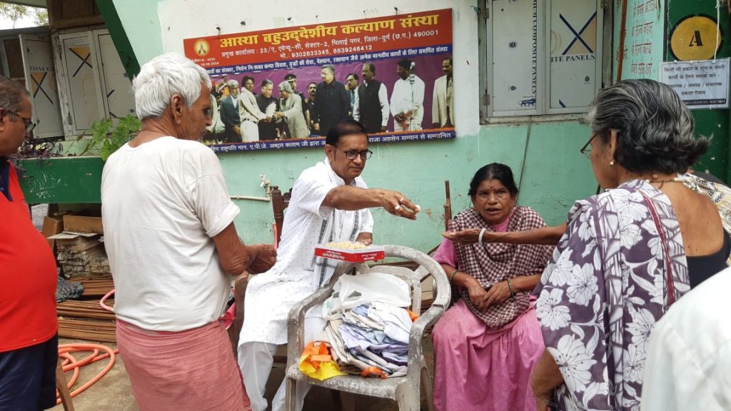साहित्य-संस्कृति मर्मज्ञ आचार्य डॉ.महेश चन्द्र शर्मा ने बहु उद्देश्यीय कल्याण संस्था आस्था वृद्धाश्रम सेक्टर-8 भिलाई में ये विचार व्यक्त किये। इस अवसर पर उन्होंने वृद्धजनों को वस्त्र वितरण करते हुए दूध-मिठाई भी खिलाई। आत्मीय संवाद के साथ उनका मुंह मीठा कराने के साथ सबके चेहरे खिल उठे। वर्षों पठन-पाठन, शोध, लेखन और प्रशासनिक अनुभवी रहे आचार्य डॉ. महेश चन्द्र शर्मा ने बुजुर्गों के आशीर्वाद और शुभकामनाएं पाकर स्वयं को सौभाग्यशाली माना।वृद्धाश्रम के स्टाफ प्रकाश बोरकर भी उनके साथ रहे। डॉ. शर्मा ने संस्था का सहयोग भी किया।