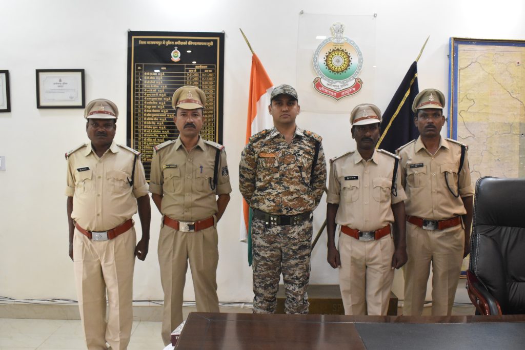 जाकर उनके उज्जवल भविष्य की बधाई और शुभकामनाएं देते हुए उनसे भविष्य में भी इसी प्रकार से कड़ी मेहनत व लगन से अपने व्यवसायिक दक्षता का परिचय देते हुए कार्य करने की अपेक्षा किया गया। उक्त स्टॉर सेरेमनी के दौरान पुलिस अधीक्षक कार्यालय नारायणपुर के अन्य अधिकारी/कर्मचारीगण उपस्थित रहें।