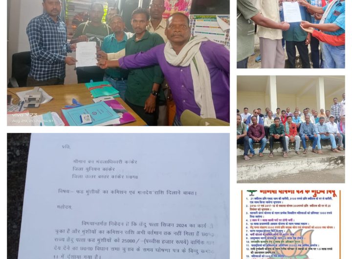 तेंदूपत्ता फड़ मुशिंयों का कमीशन राशि एवं वार्षिक मानदेय राशि अभी तक अप्राप्त कांकेर तेंदूपत्ता फड़ मुशिंयों का कमीशन राशि एवं वार्षिक मानदेय राशि अभी तक अप्राप्त Buland Times August 29, 2024