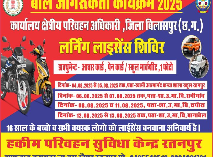 ड्राइविंग एवं लर्निंग लाइसेंस शिविर का आयोजन, युवाओं में उत्साह बिलासपुर ड्राइविंग एवं लर्निंग लाइसेंस शिविर का आयोजन, युवाओं में उत्साह buland admin August 3, 2025